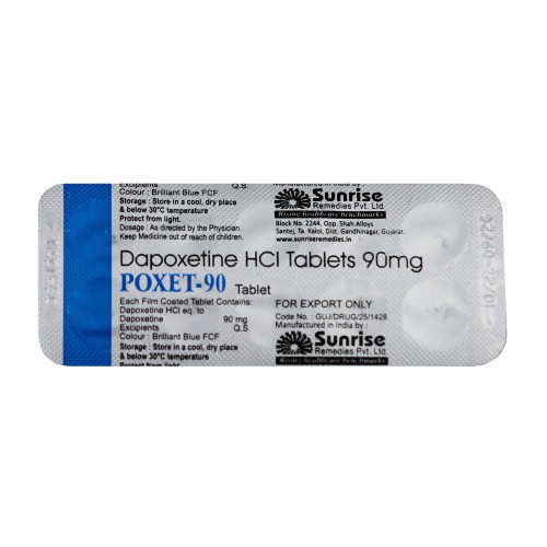 POXET-90 (Dapoxetine hydrochloride) (blister 10tab x 90 mg) is a drug for men who suffer from premature ejaculation, but do not suffer from erectile dysfunction. POXET contains the active ingredient Dapoxetine, which contributes to the development of a tolerance to the sensitivity of the penis, and thus to maintain and enjoy sex longer. POXET successfully treats this problem. Dapoxetine delays orgasm and increases the duration of intercourse by 3-5 times. The drug is taken one to three hours before the expected proximity. Dapoxetine compares favorably with other drugs in that it is designed to help with a specific problem and is effective even with a single use. Dapoxetine does not affect the quality of erection and can be used in conjunction with drugs that regulate erection, such as Viagra (sildenafil), Cialis (tadalafil), Levitra (vardenafil). Dapoxetine has been clinically tested on men in more than 25 countries around the world. ... With long-term use of the drug, the best performance is achieved. Buy POXET 90 mg is beneficial for people who want to save some money. That is, you break the pill into 2 parts and take 1 half before sex, and leave the other half for another time. Dapoxetine increases the time to ejaculation by 4 times, which has a positive effect not only on the pleasure of your partner, but also on your self-esteem, which will rise to heaven. It is not recommended to take more than 90 mg of the drug per day, i.e. 1 tablet.