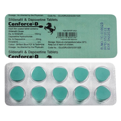 Cenforce-D (Sildenafil Citrate 100mg & Dapoxetine 60mg) is a new form of hybrid combination treatment for erectile dysfunction and premature ejaculation. Containing the active ingredients Sildenafil Citrate and Dapoxetine, patients can experience a healthy erection and more control over the length of intercourse. Dapoxetine is clinically proven and approved in many countries to treat premature ejaculation and allows intercourse to last longer. Patients taking Cenforce-D can expect an effective treatment time of 4 - 6 hours.